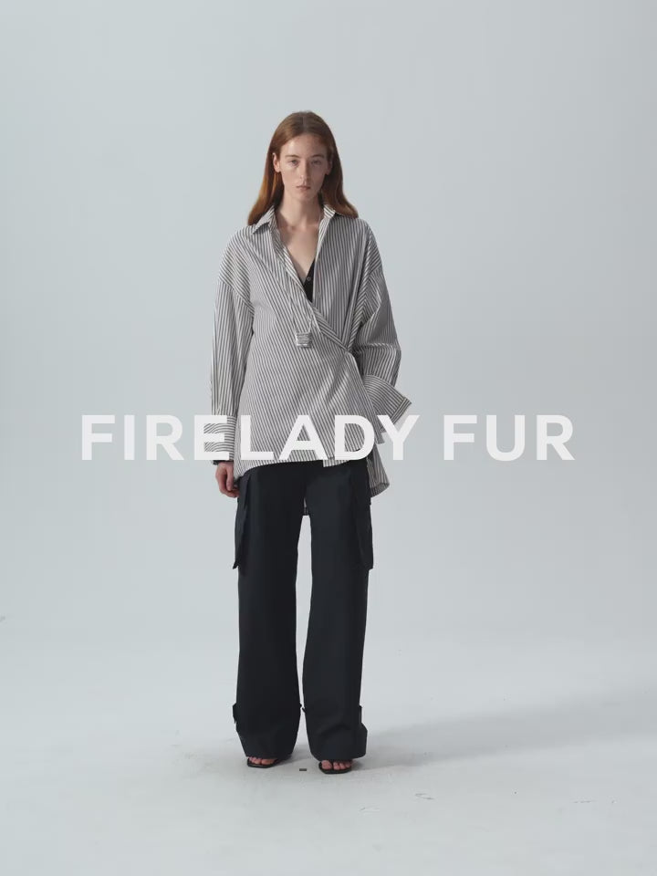 Asymmetrical slanted placket loose-fitting shirt